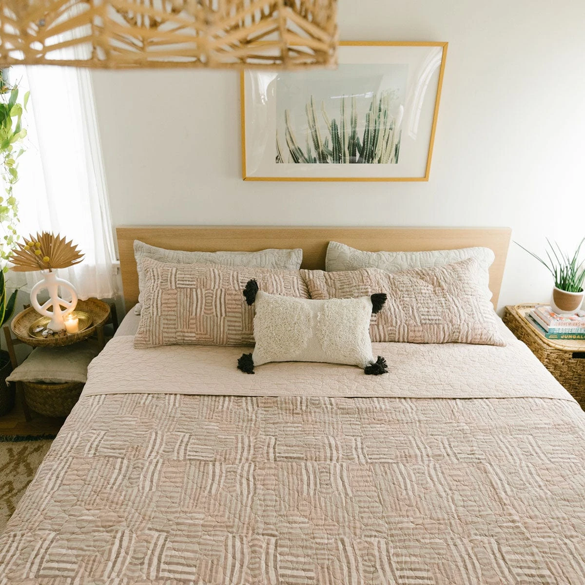 - Full/Queen: 88″x90″, shams: 20″x26″