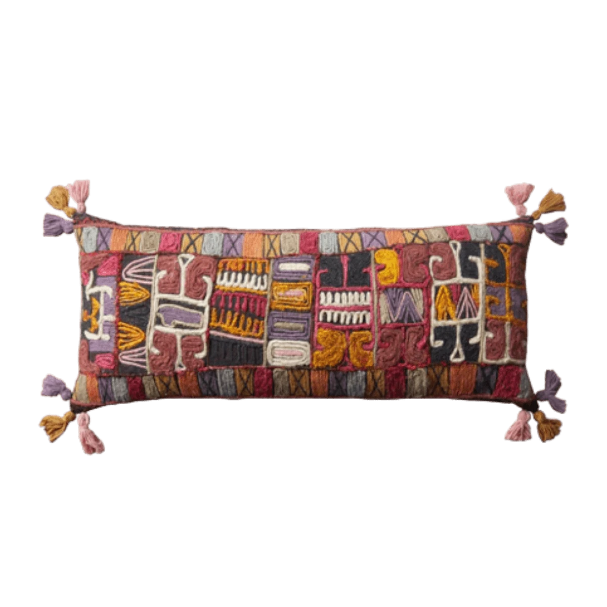 Let your sofa stand out with this unique, tassel-edged lumbar pillow handcrafted in India.