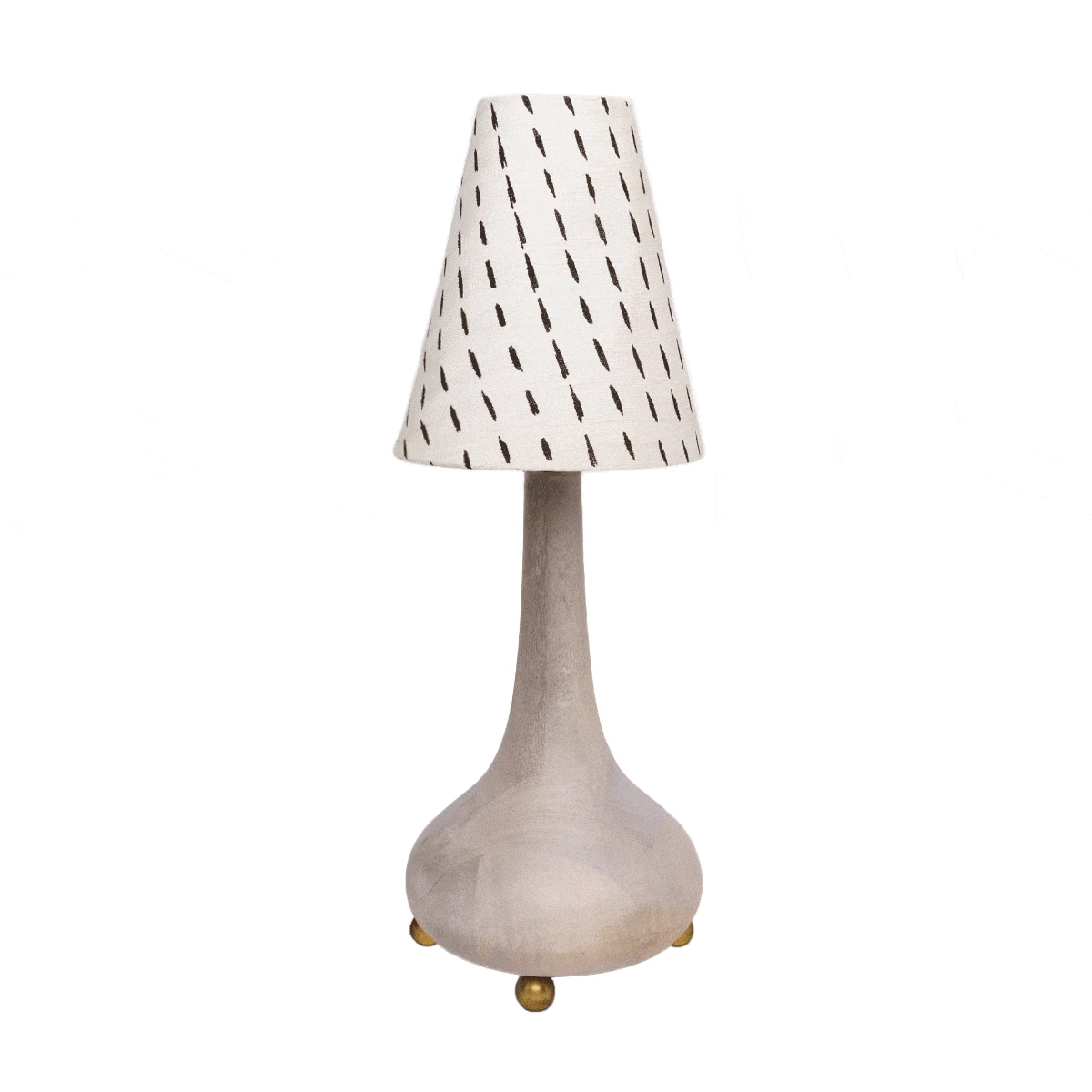 The right lighting can dramatically increase the quality of life and help with productivity, relaxation, and even romance in and outside of your home. We love the grey wash featured on this wooden lamp!