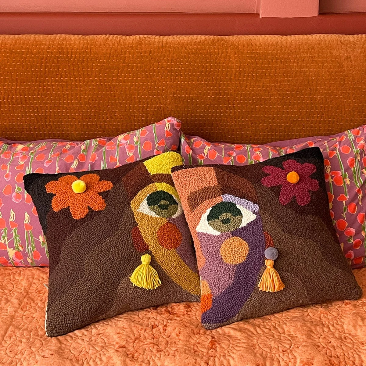Gem Hook Pillow designed by Jungalow is the flower child that lives in all of us. With her bright colors and playful pom pom, Gem will bring joy to any space. Check out Gem’s sister, the Ella Hook Pillow! Together, Gem & Ella (Gemella), meaning “twin” in Italian, make the perfect pair. Double the pillows, double the fun!