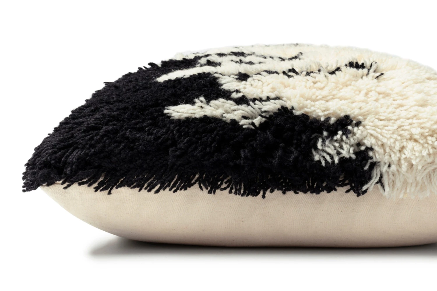 Designed by Justina Blakeney® for Loloi, this hand woven pillow features a drastic black and white color block with smooth water like edges – we suggest pairing this pillow with bright and bold colors!