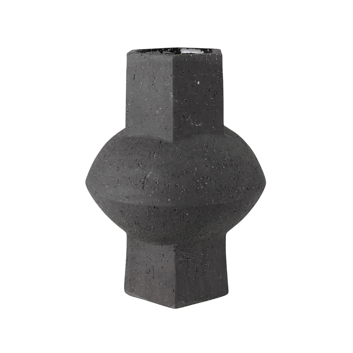 Oujda Hexagon Black Ceramic Vase is the perfect addition to any home décor. Crafted of black clay with a deckled texture, this vase combines a modern, primitive style with strength and durability. Create a stunning tabletop vignette by pairing this vase with structural elements.